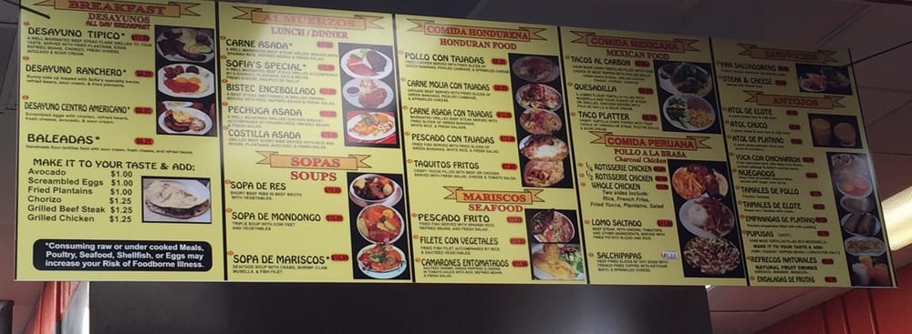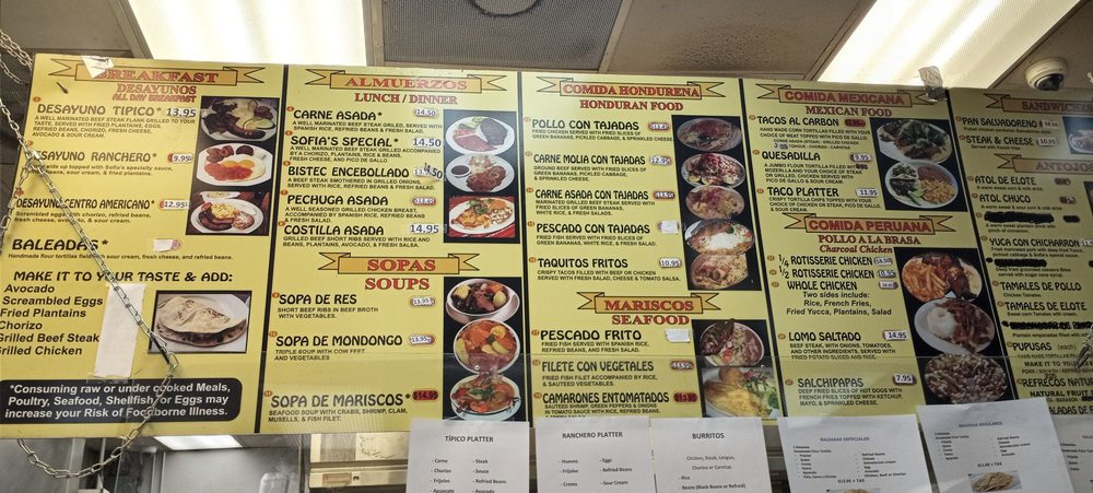 Introducing the menu at Sofia's Pupuseria, a beloved Honduran-Salvadoran taco joint located at 3610 Columbia Pike in Arlington, VA. This casual eatery offers a plethora of options, from pupusas to tamales and rice and beans. Reviewers rave about the friendly service and delicious food, with standout items like the cheese pupusa stealing the show. The atmosphere is lively, with outdoor seating, Wi-Fi, and a welcoming vibe for families and groups. Whether you're a pupusa aficionado or looking to try something new, Sofia's Pupuseria is a must-visit for authentic Central American cuisine. Don't miss out on their flavorful marinated steak and fresh fish dishes, served with homemade tortillas and grilled veggies. Overall, a top choice for a satisfying and heartwarming meal in the D.C. area.